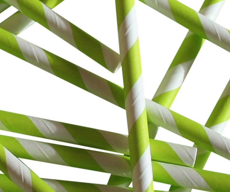 Compostable Paper Straws – Green Stripe – 197mm x 6mm (Small bore) – Case of 1500 (6×250)